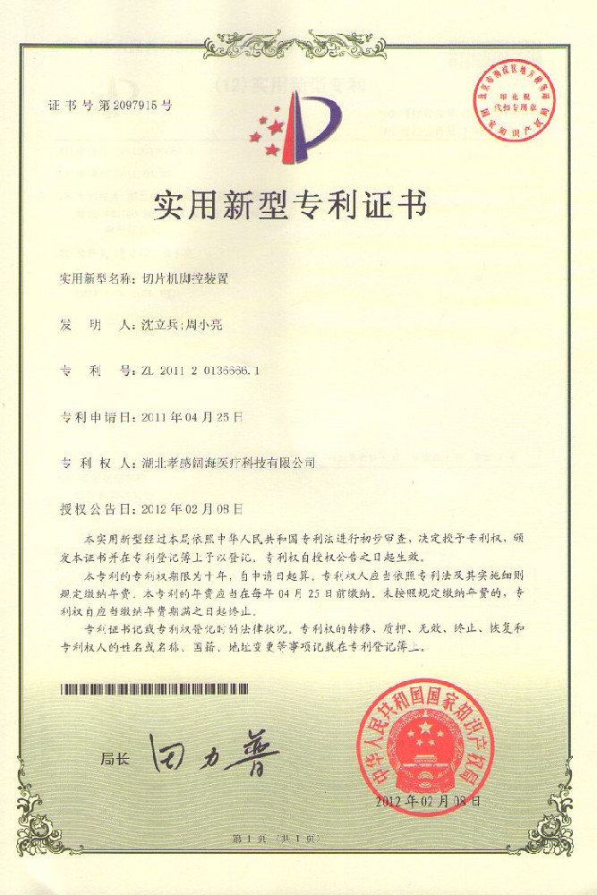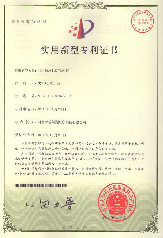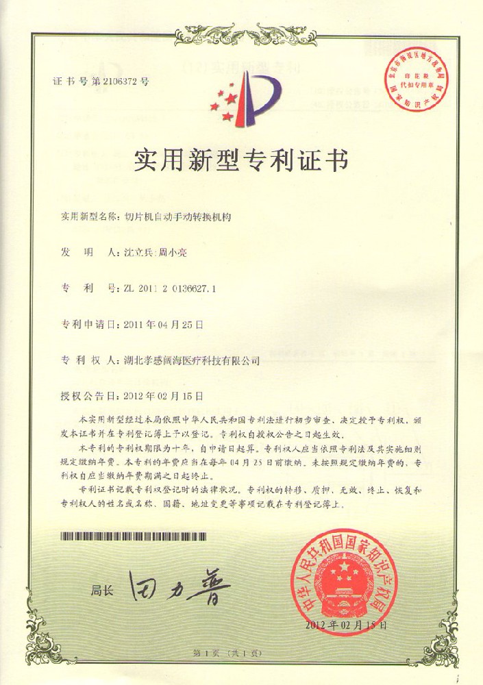 切(qie)片機專利證書02 切(qie)片機專利證書03