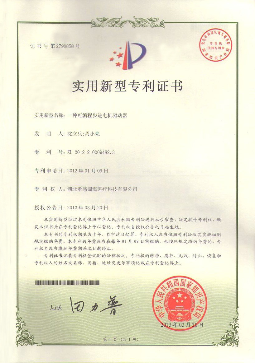 可編程步進(jin)電(dian)機驅動(dong)器(qi)專利證書(shu)