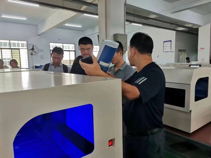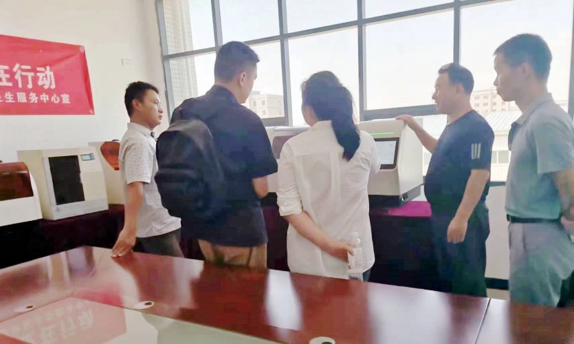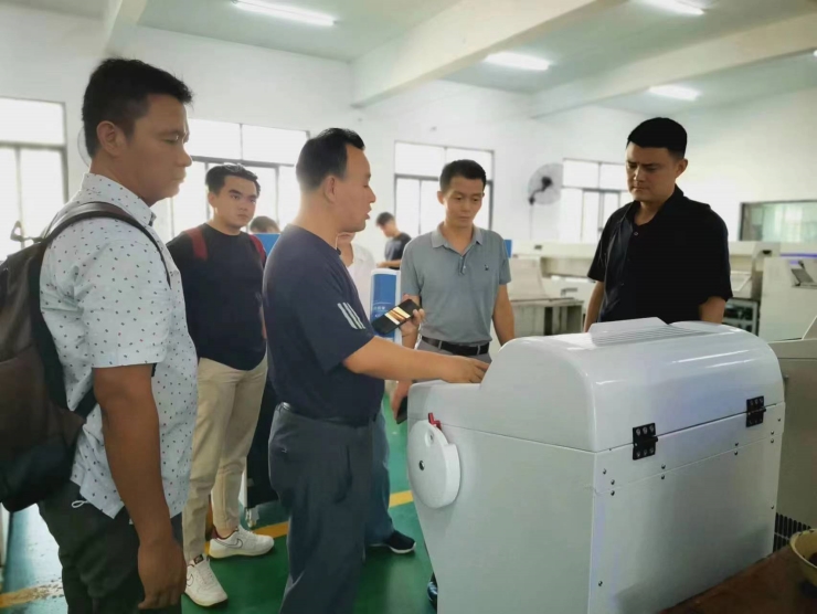 印度尼西亞(ya)女老板(ban)與(yu)隨行翻譯熱烈討論闊海醫(yi)療科(ke)技生產(chan)的染色封片(pian)一(yi)體機(ji)