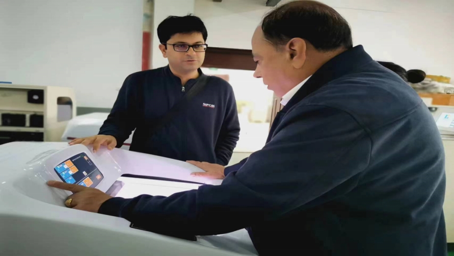 印度客戶(hu)親自上(shang)手操作闊海醫(yi)療生產的組(zu)織冷凍切片機