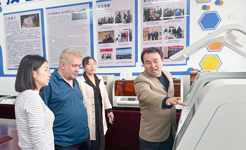 闊(kuo)海醫(yi)療科技 相關負責人為Abd先生講解設(she)備性(xing)能(neng)及優勢特點