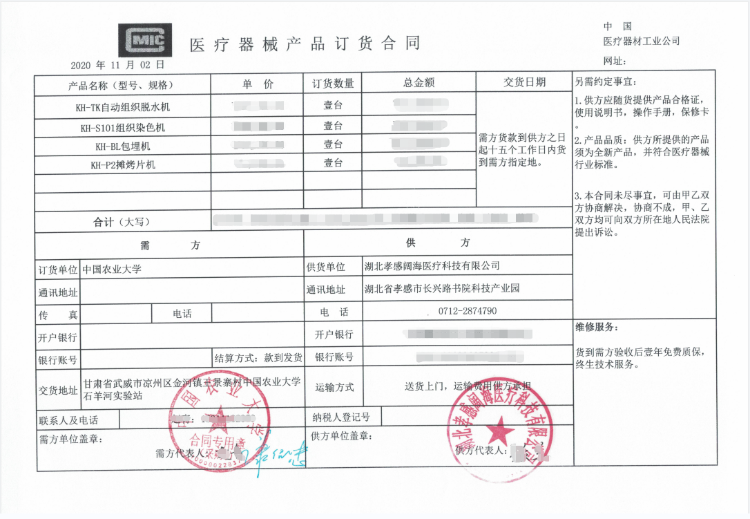 中國農業大學、云南農業大學、湖南農業大學、甘肅農業大學、云南玉溪農業學院先后采購闊海病理儀器