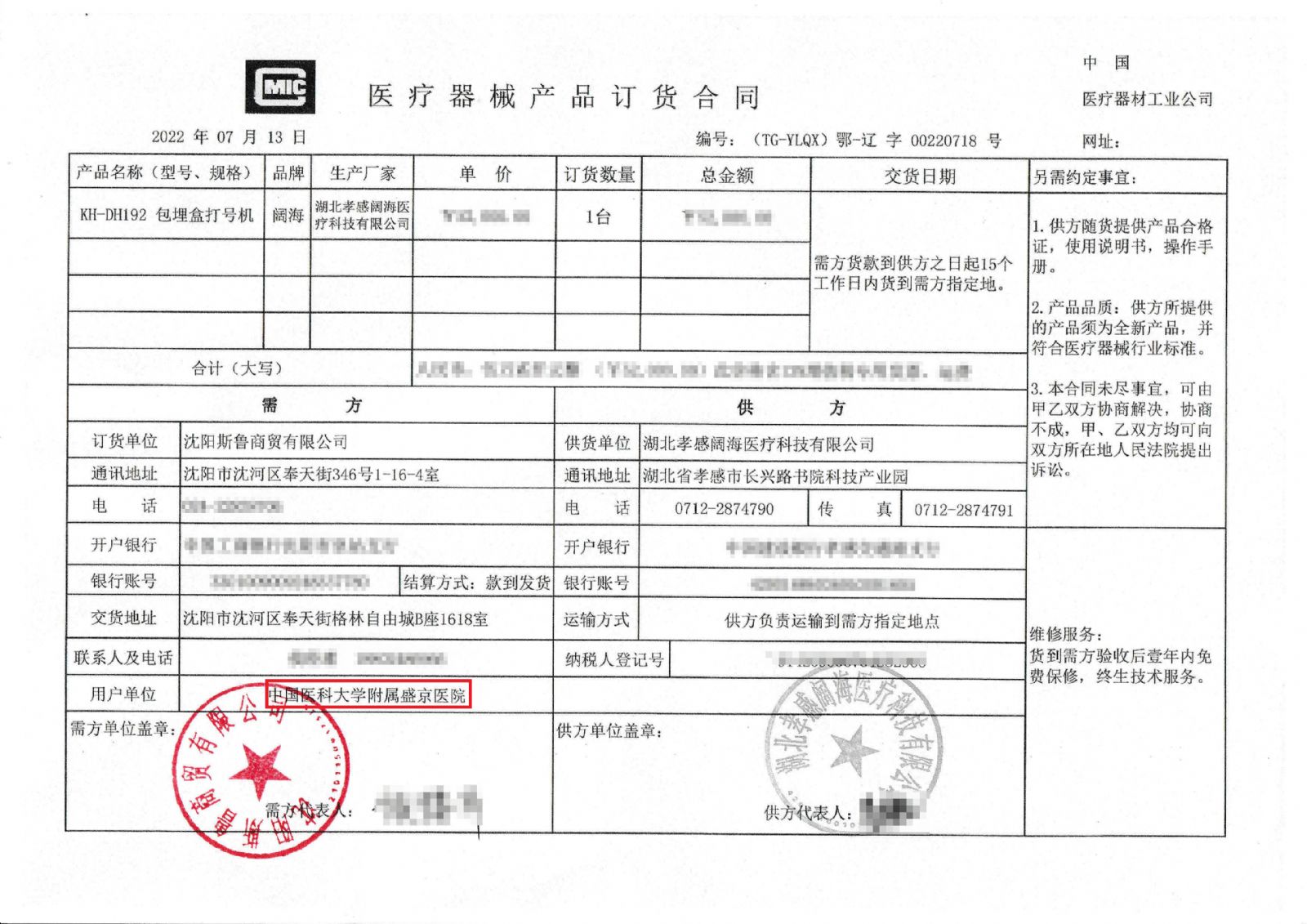盛京醫(yi)院是(shi)國內(nei)第(di)一(yi)(yi)家擁有中國馳名商標的綜(zong)(zong)合醫(yi)院,東(dong)北地區綜(zong)(zong)合排名第(di)二(復旦排行),該醫(yi)院也是(shi)一(yi)(yi)所(suo)大(da)(da)型綜(zong)(zong)合性、現代化(hua)、數字(zi)化(hua)的大(da)(da)學附屬醫(yi)院。本(ben)次選購(gou)闊海(hai)包埋盒(he)打號機,也是(shi)為了實現本(ben)院的數字(zi)化(hua)建設。