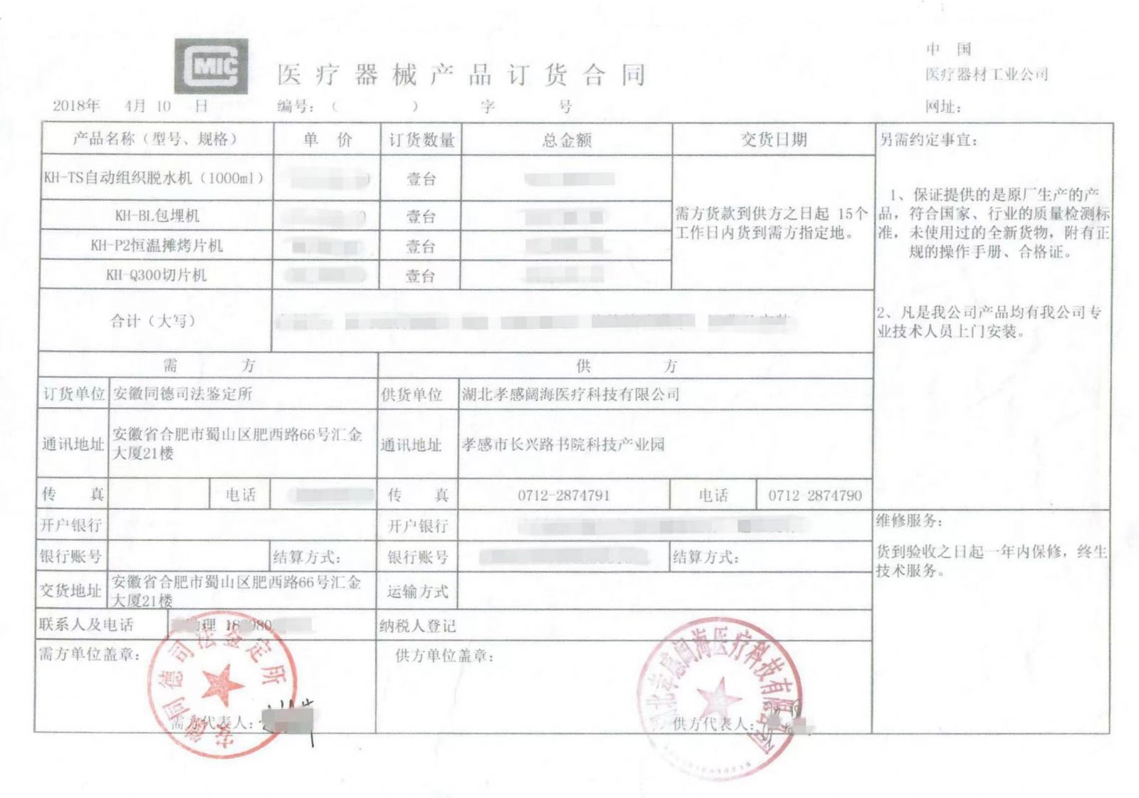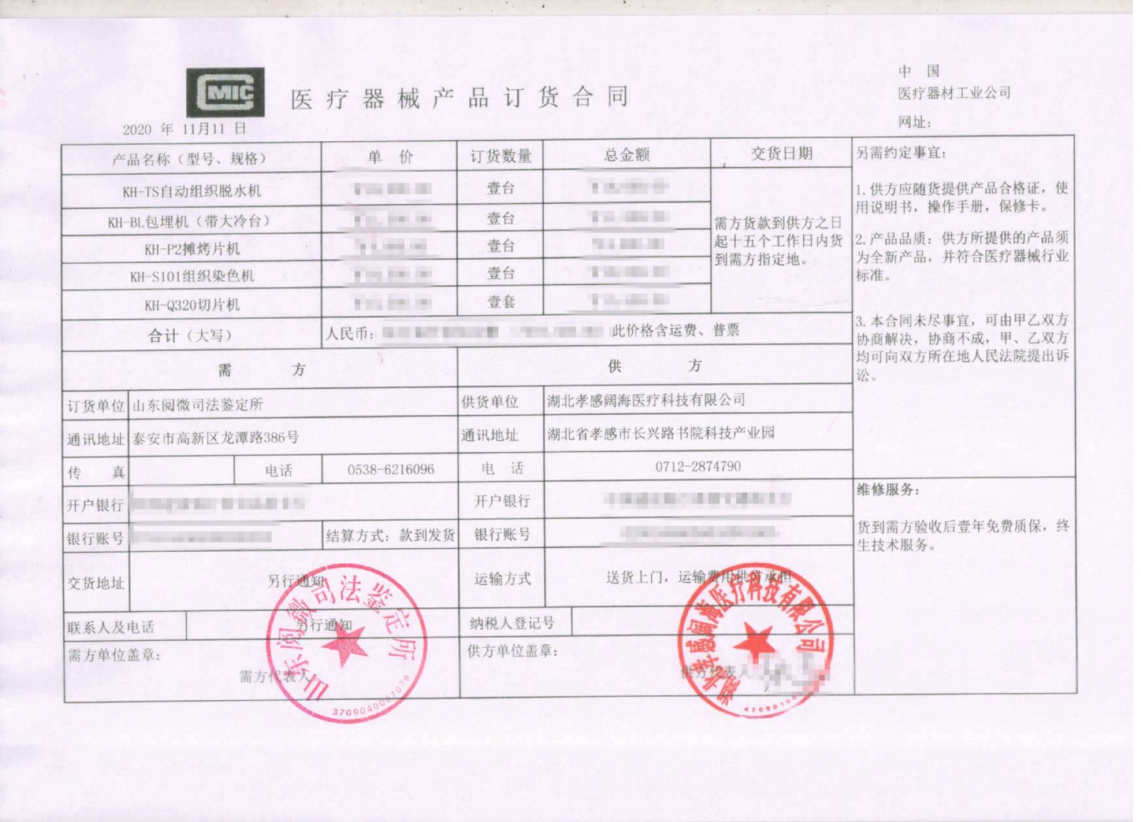 看訂單:12家司法鑒定機構選擇闊海病理儀器,訂單就是有力的證明